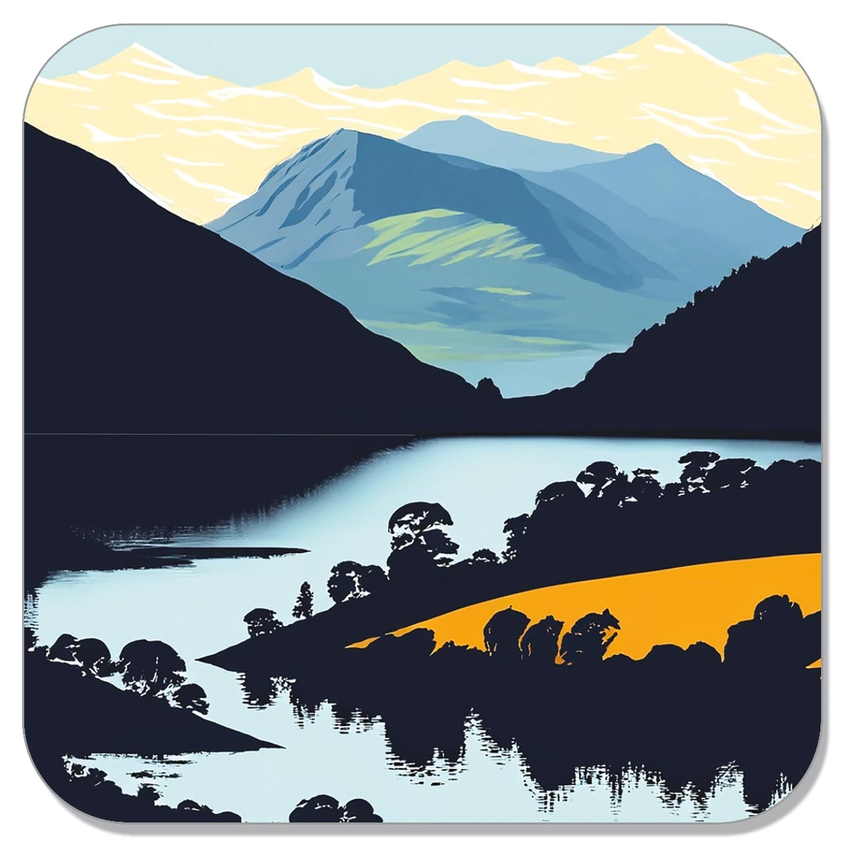 Beautiful illustrations of lakes and mountains – celebrating our glorious countryside.