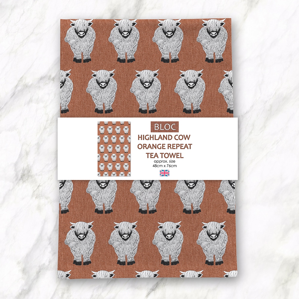 BLOC repeat pattern tea towel  – featuring pen drawings by Jan Morley in a modern folk style.
