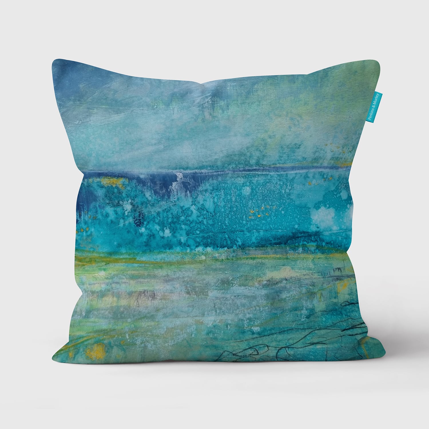 Iridescent cushion is taken from abstract artwork inspired by coastal views and the ever changing light.