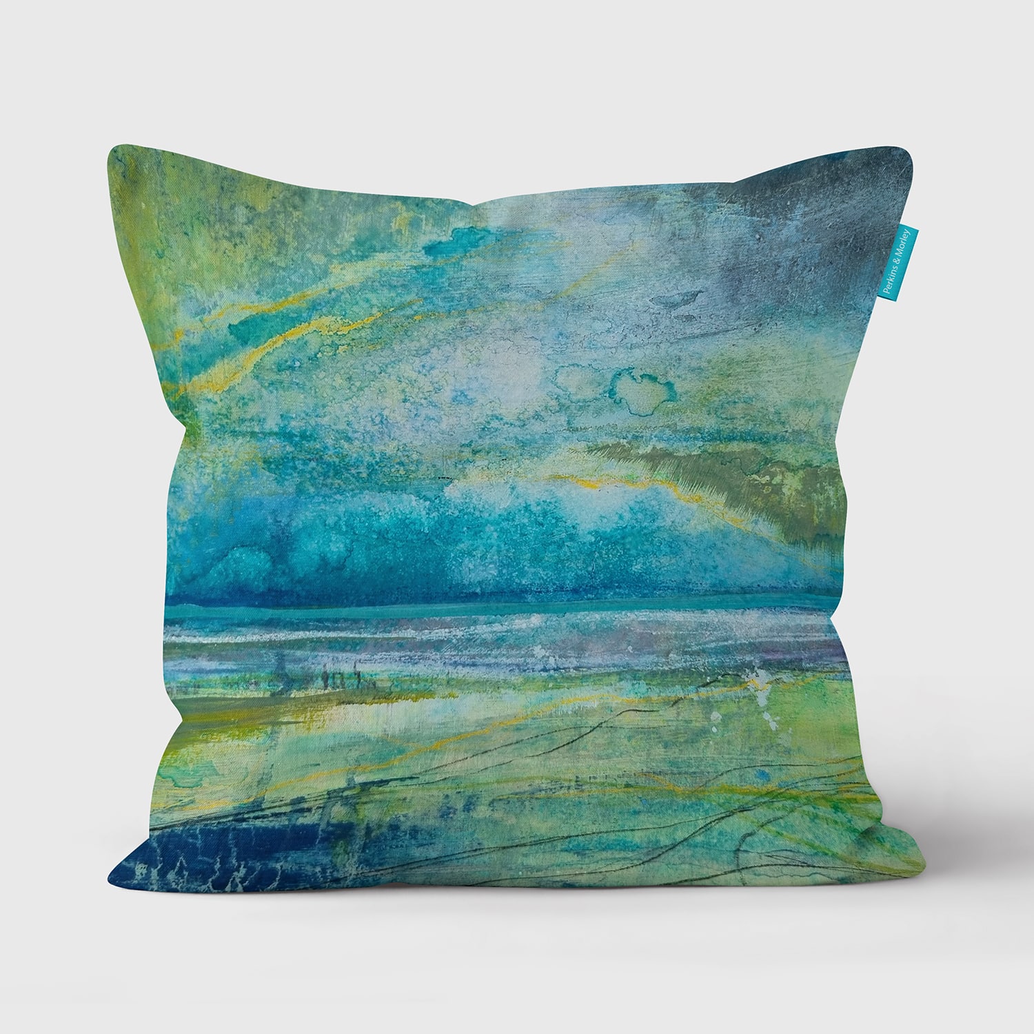 Northern Lights cushion is taken from abstract artwork inspired by coastal views and the ever changing light.